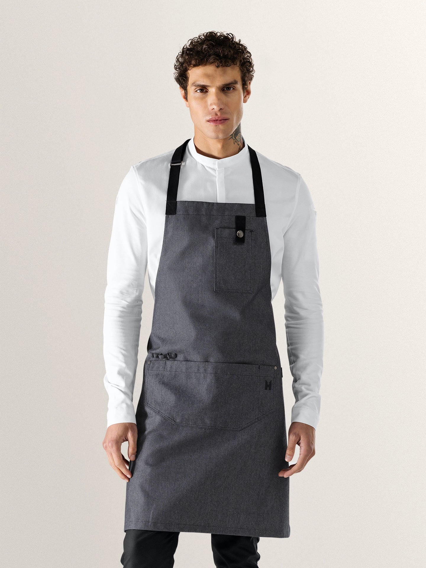 | Produktmerkmale | Gesticktes „Le Nouveau Chef H“ auf der Tasche Mehrere Taschen Nicht abnehmbarer Bund Separates Band für Küchentuch Unisex Verstellbarer Nackengurt |