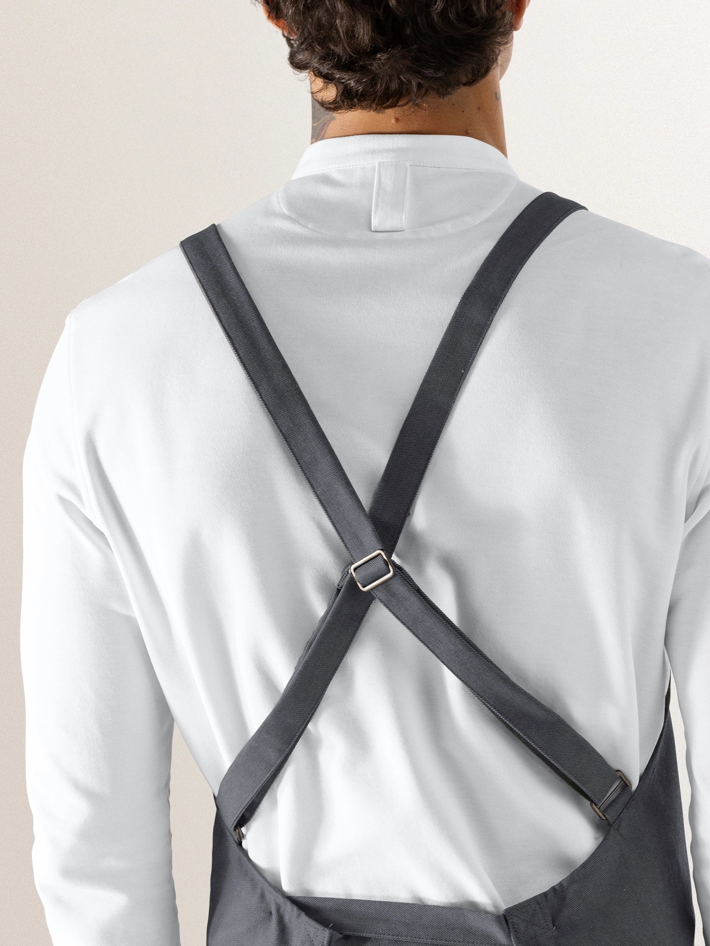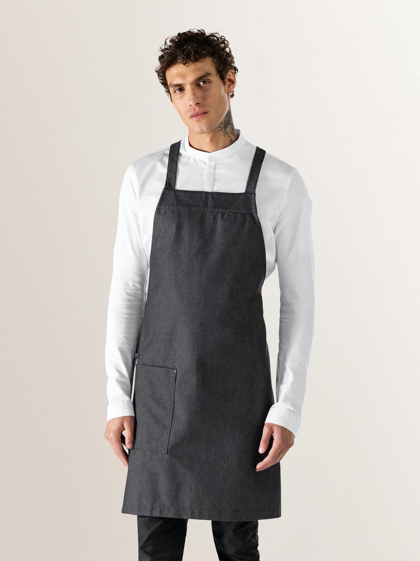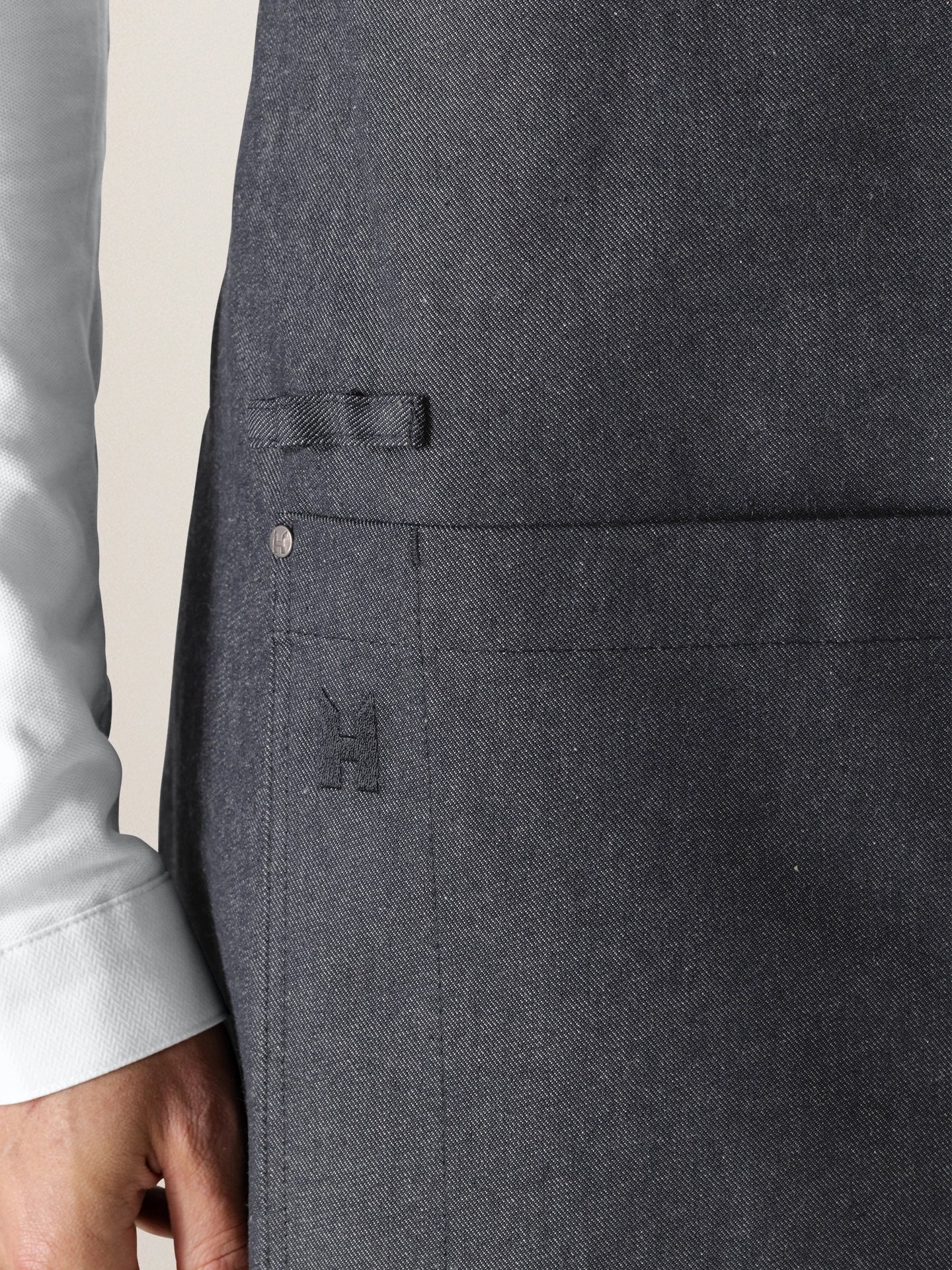 | Caractéristiques | Bretelle croisée au dos Brodé Le Nouveau Chef H sur la poche Ceinture non amovible Poche avant et poche stylo intérieure sur la poitrine Pour le personnel de service et de cuisine Unisexe |