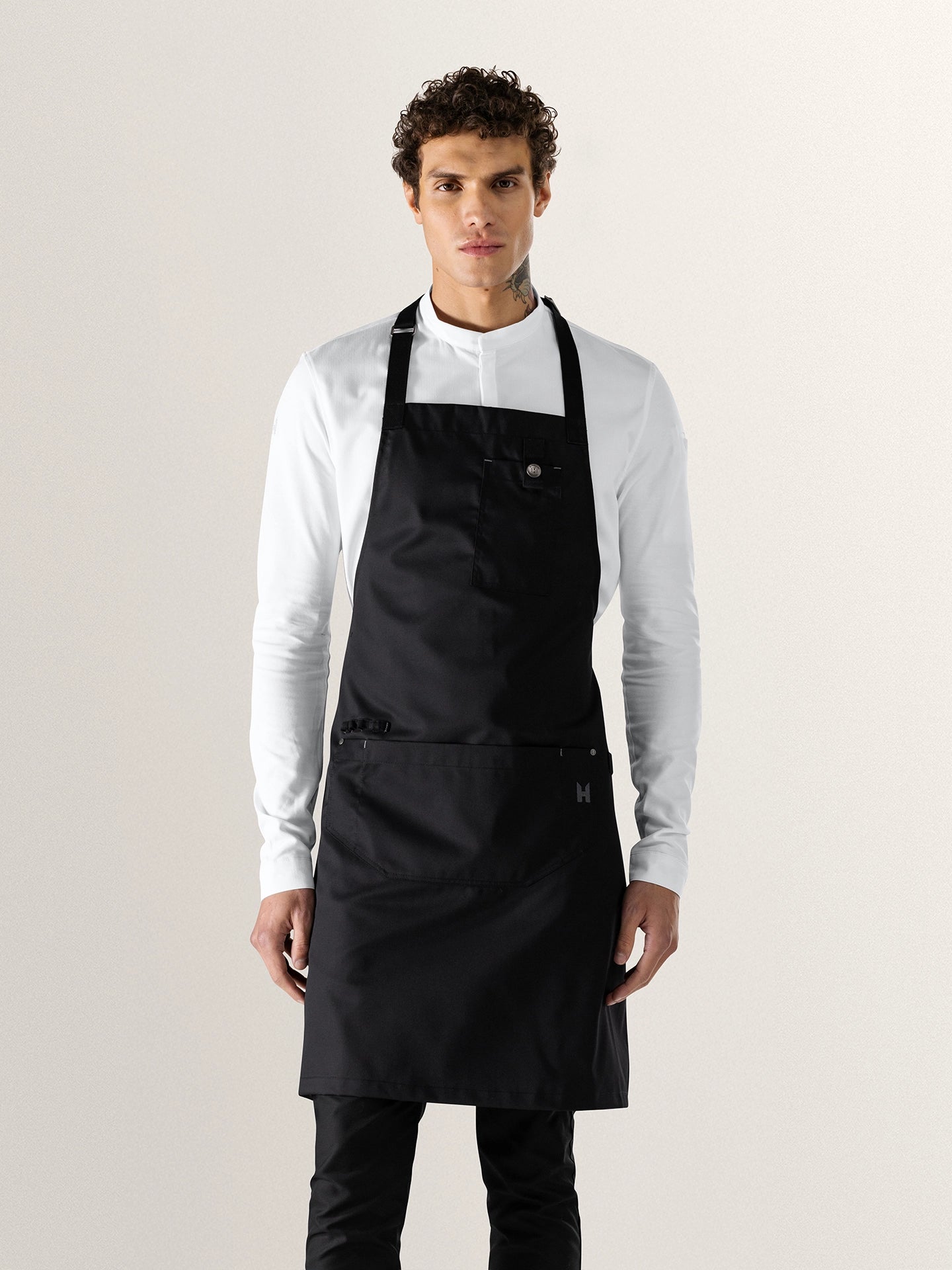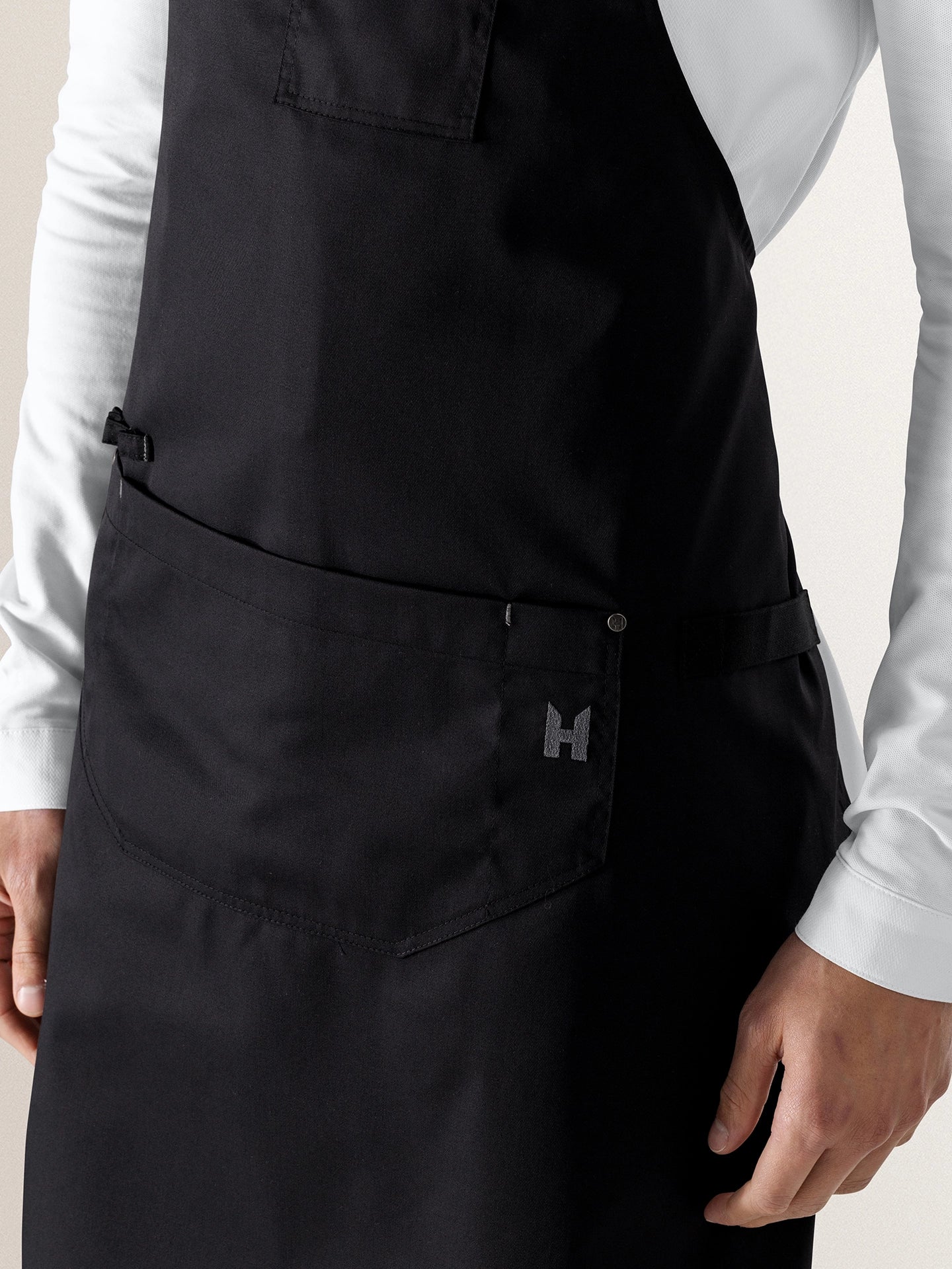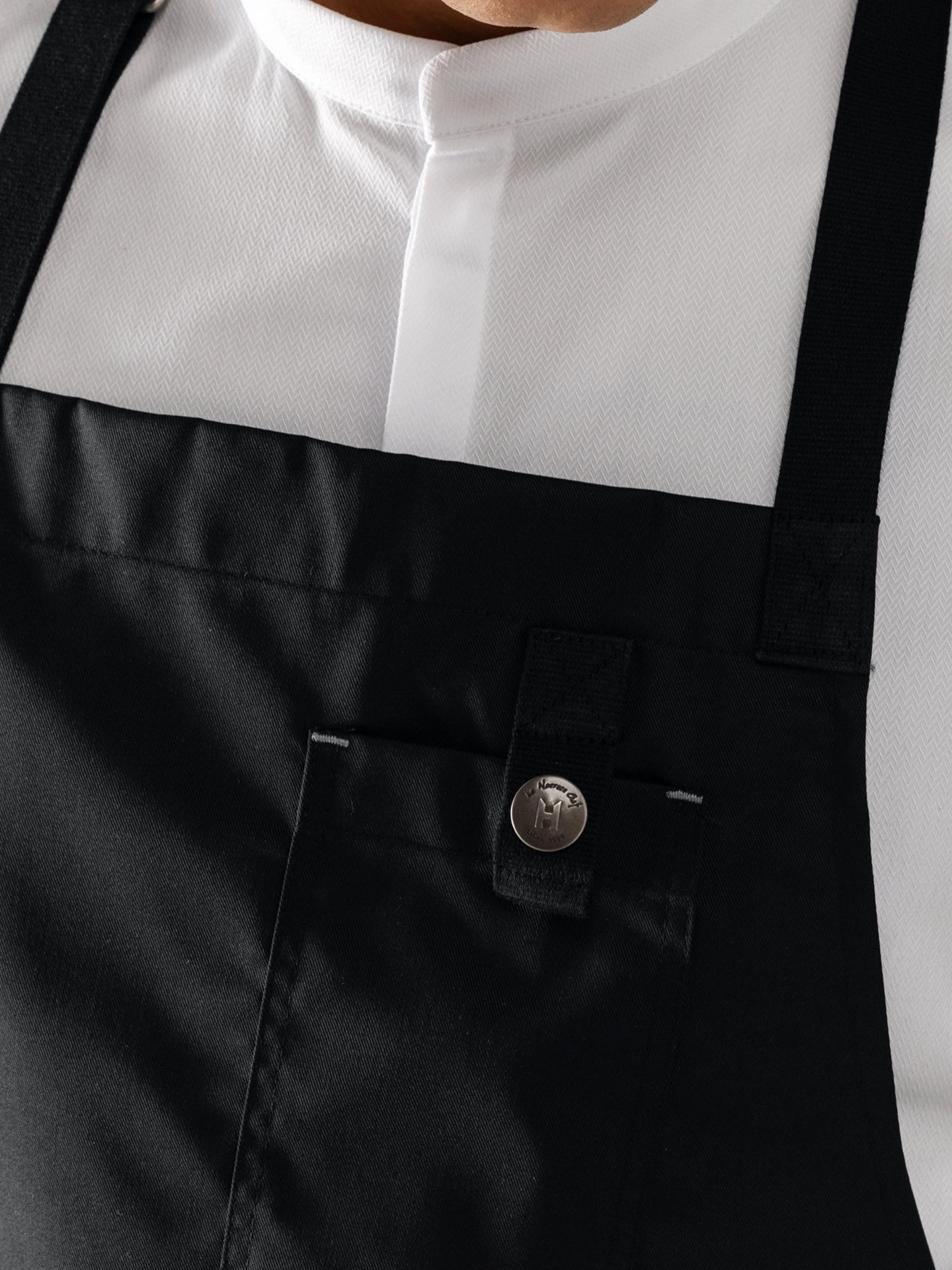 | Caractéristiques | Bande séparée pour torchon de cuisine Brodé Le Nouveau Chef H sur la poche Ceinture non amovible Multiples poches Tour de cou réglable Unisexe |