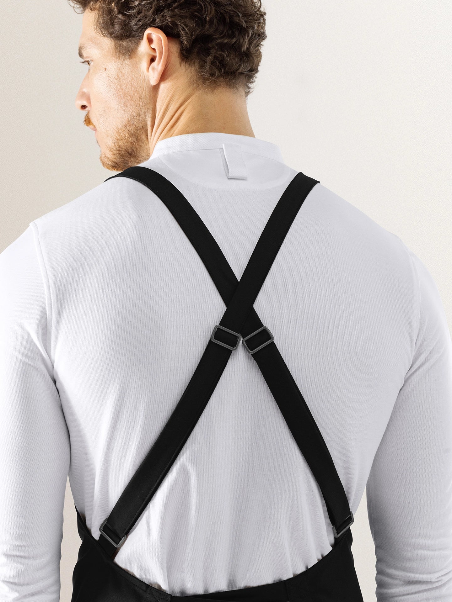 | Product features | Cross back straps Embroidered Le Nouveau Chef H on pocket For both service and kitchen employees Front pocket and inner pen pocket on breast Non-detachable waistband Unisex |