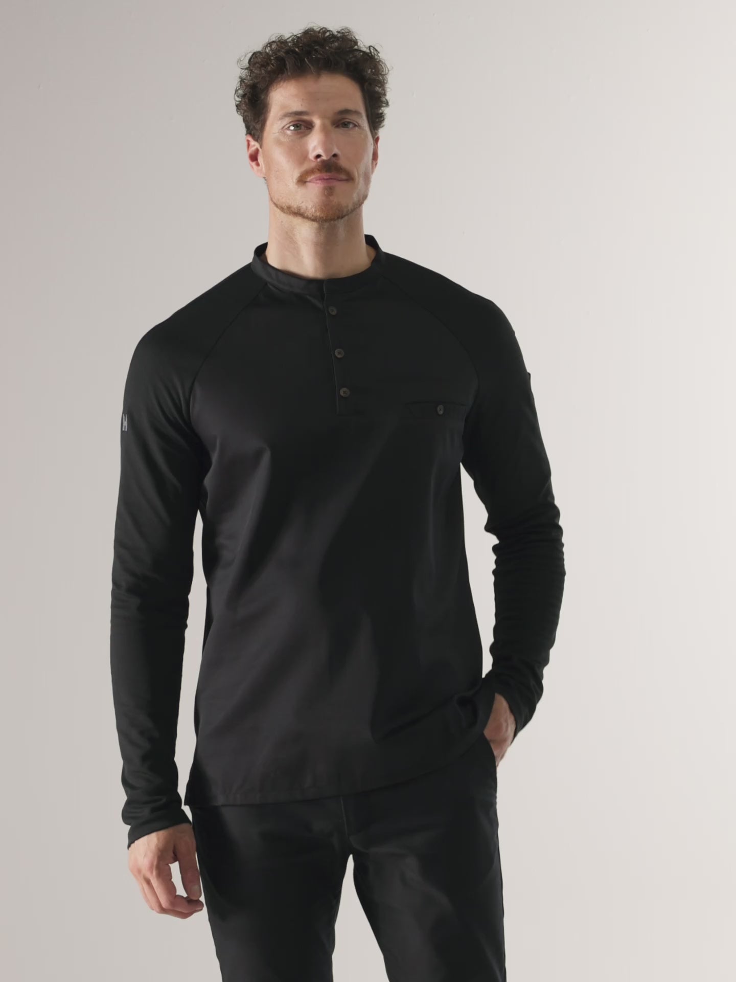 | Product features | Apron add-on with press stud and extended round back Breast pocket and pen pocket on sleeve Embroidered Le Nouveau Chef H on sleeve Longsleeve Over the head Round collar |