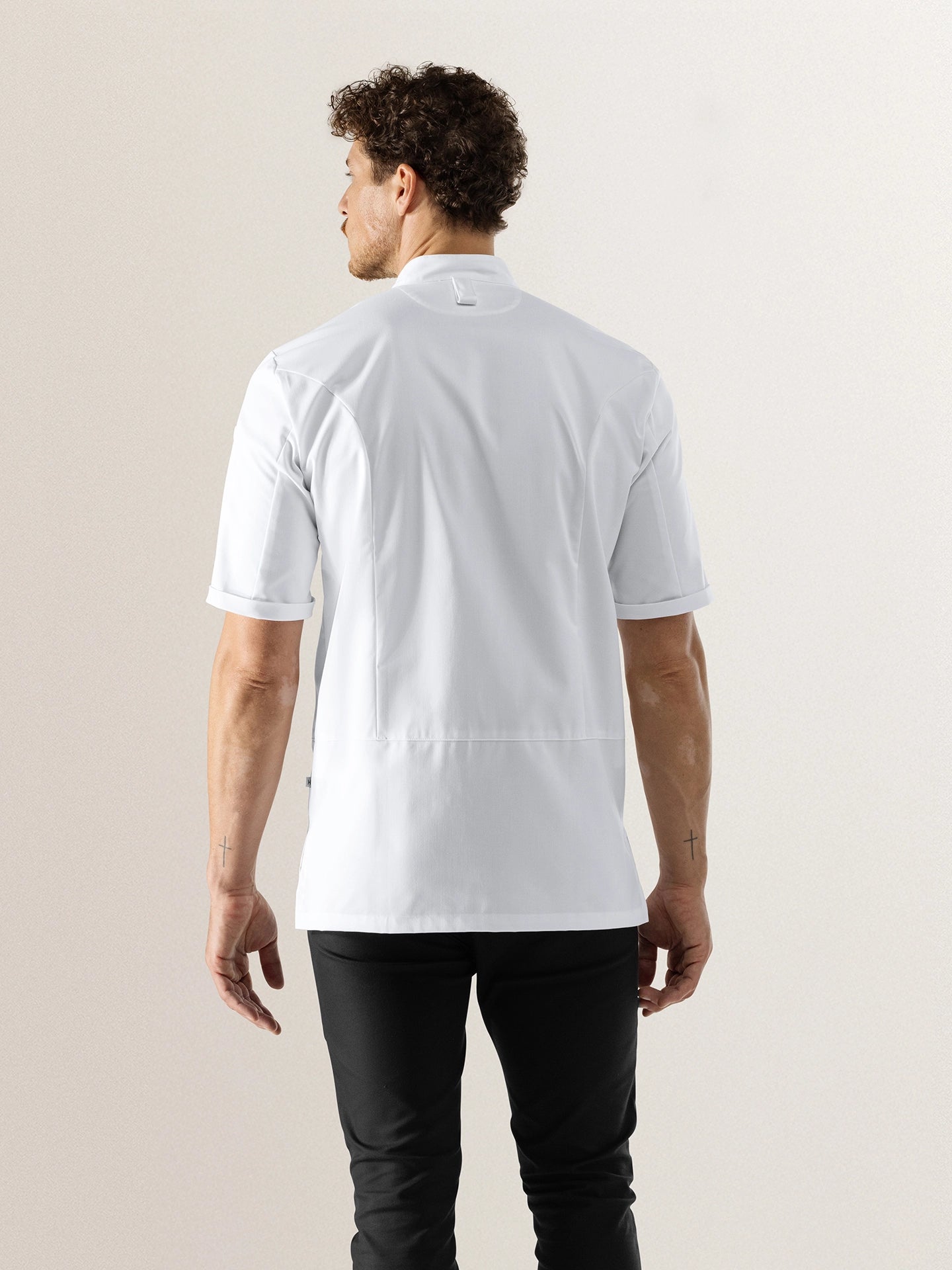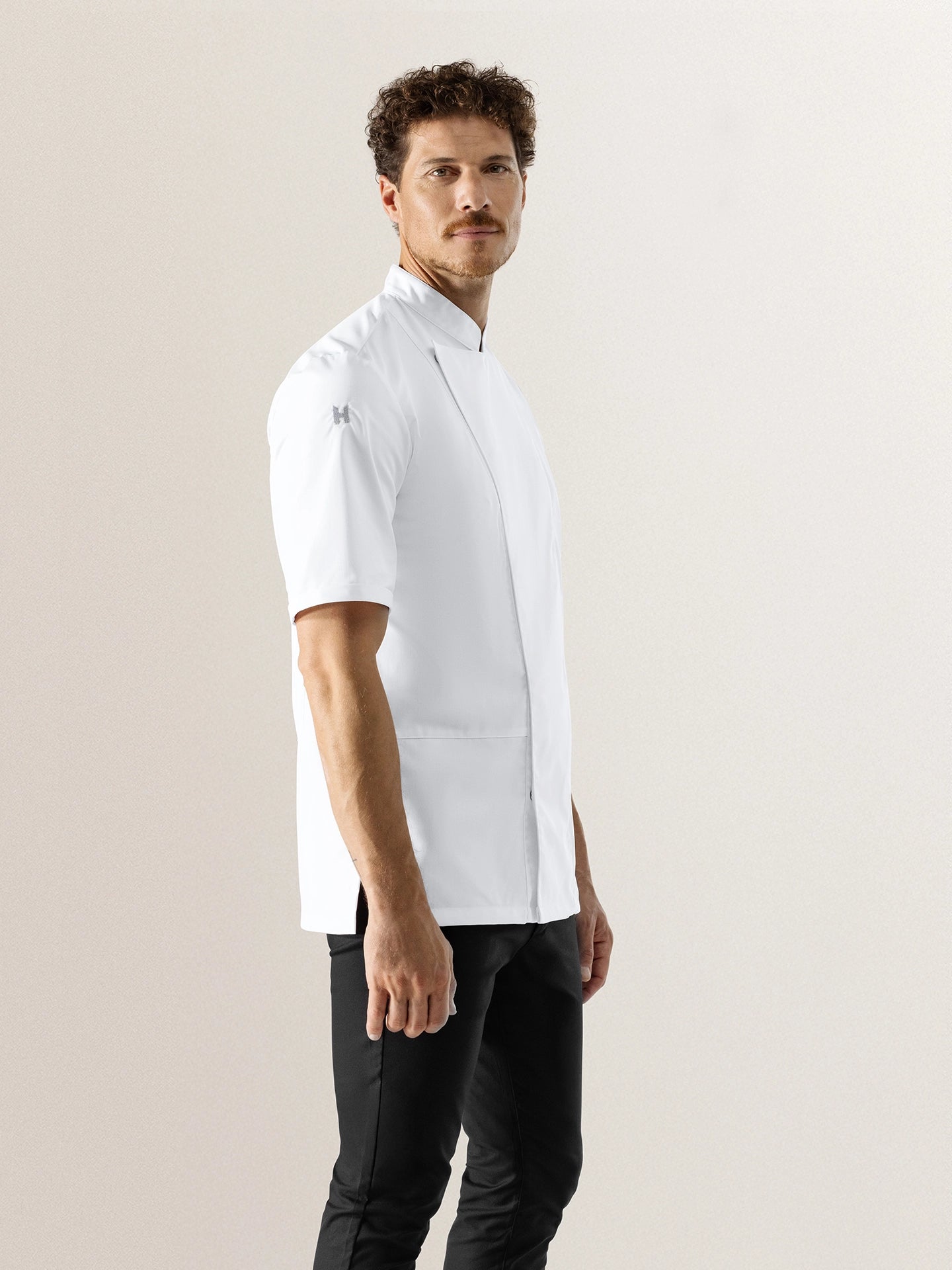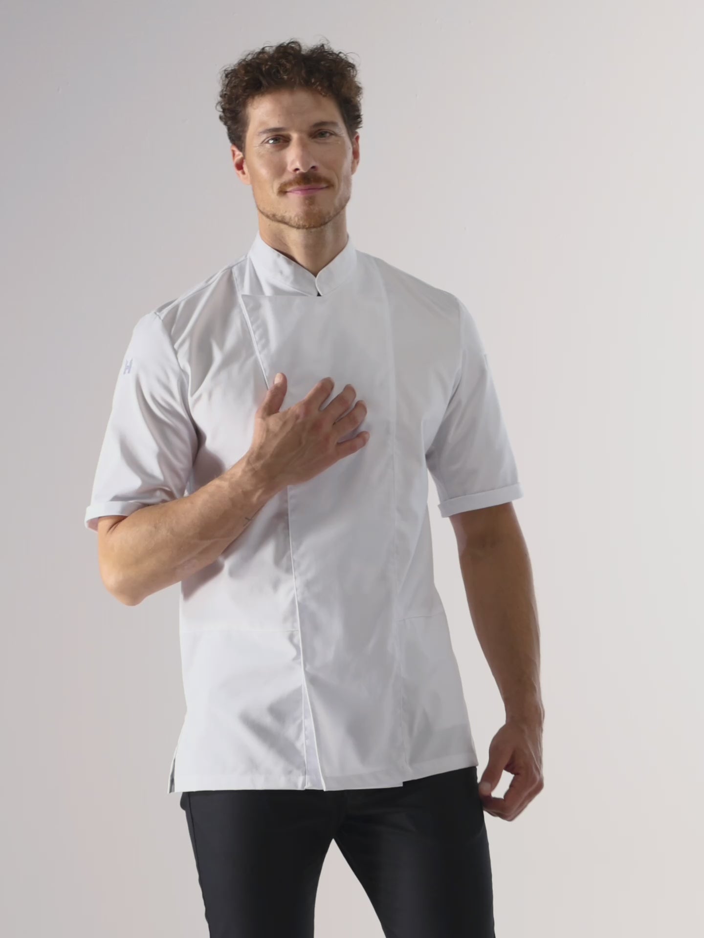 | Product features | Embroidered Le Nouveau Chef H on sleeve For kitchen employees Hidden pocket and pocket on the sleeve High stand collar Invisible press studs Short sleeves |